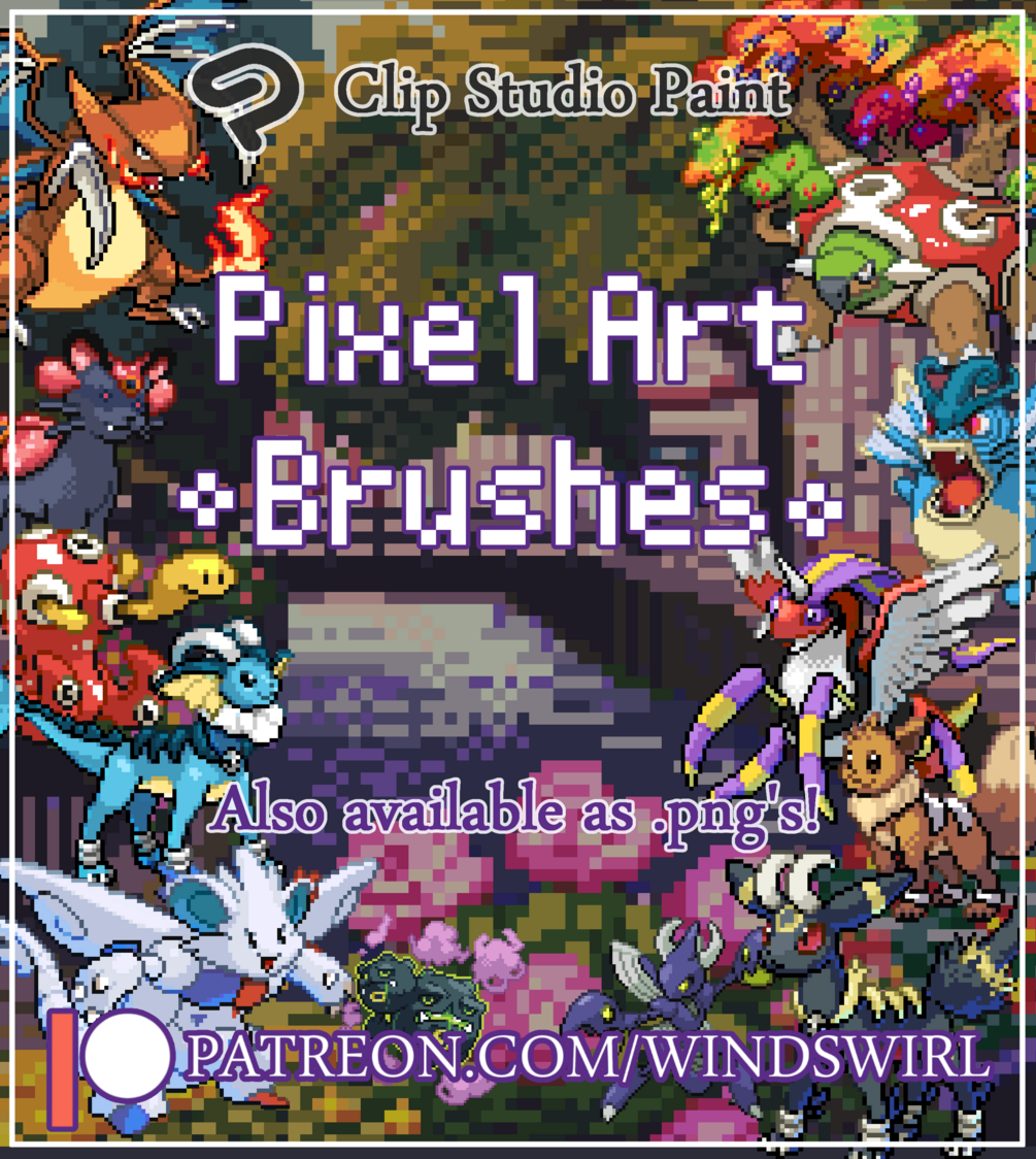 This brush pack includes 2 self-made pixel brushes for Clip Studio Paint that allow you to quickly and easily paint and edit pixel art. The pack comes with 2 individual .png files for those of you who want to make their own brushes in alternative software.