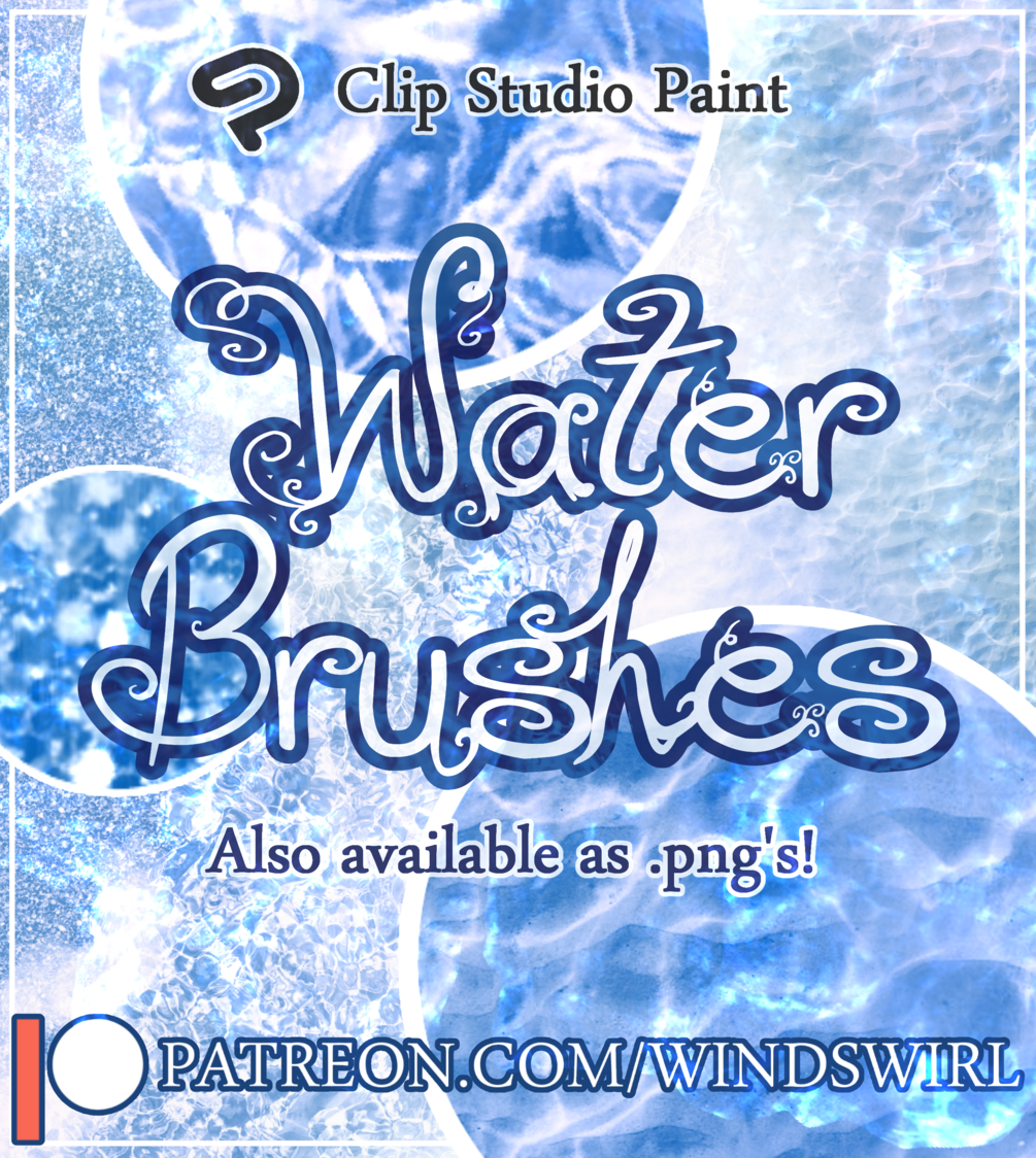 This brush pack includes 5 self-made water brushes for Clip Studio Paint that allow you to quickly and easily paint different kinds of water textures. The pack comes with 10 individual .png files for those of you who want to make their own brushes in alternative software.